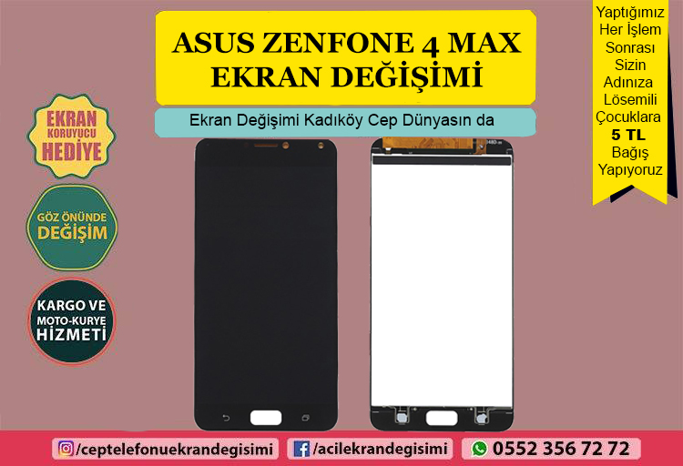 Göz önünde ekran değişimi işlemleri denildiğinde akla gelen ilk servislerden bir tanesi olan Kadıköy Cep Dünyası’nda 15 dakika içerisinde hiçbir gizli bölmeye geçilmeden yapılan Asus Zenfone 4 Max Ekran Değişimi işlemleri sizlere yılın 365 günü en uygun fiyat avantajları ile sunulmaktadır…